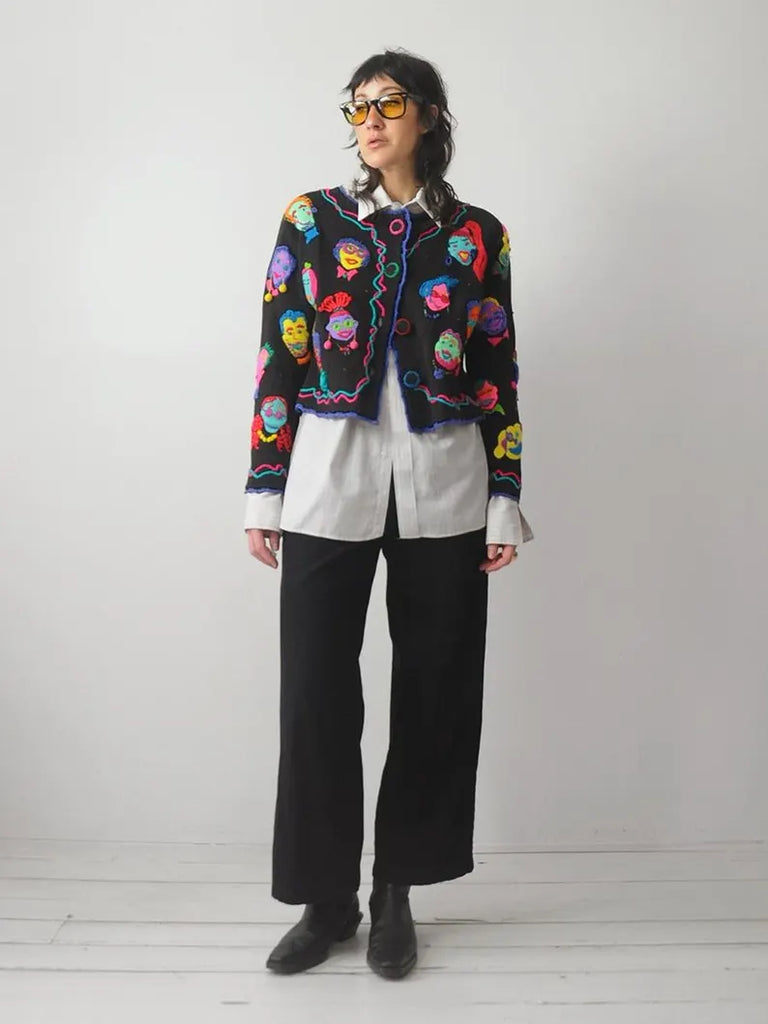1994 Michael Simon 3D Face Cardigan