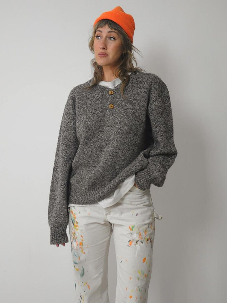 -Cozy salt and pepper knit.