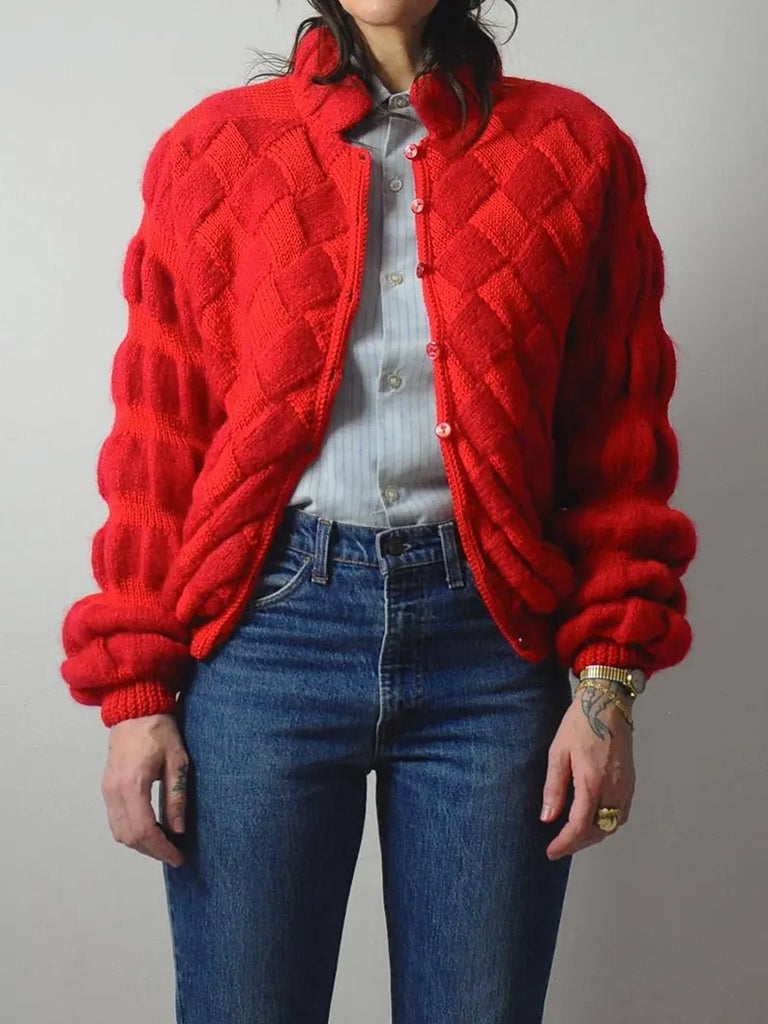 Basketweave Bubble Knit Sweater Jacket