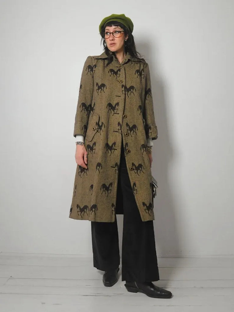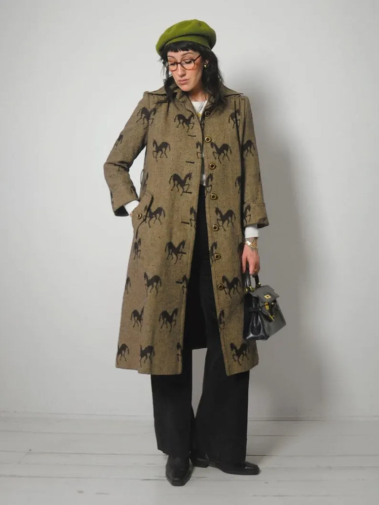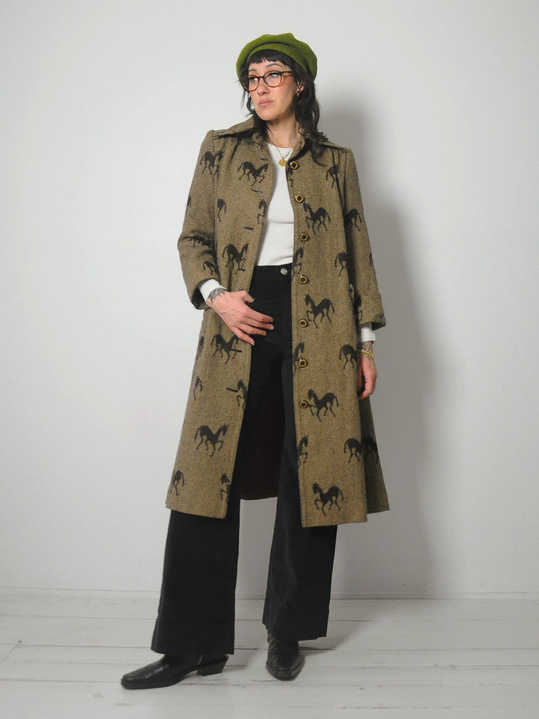 1970's Horse Print Wool Tweed Coat