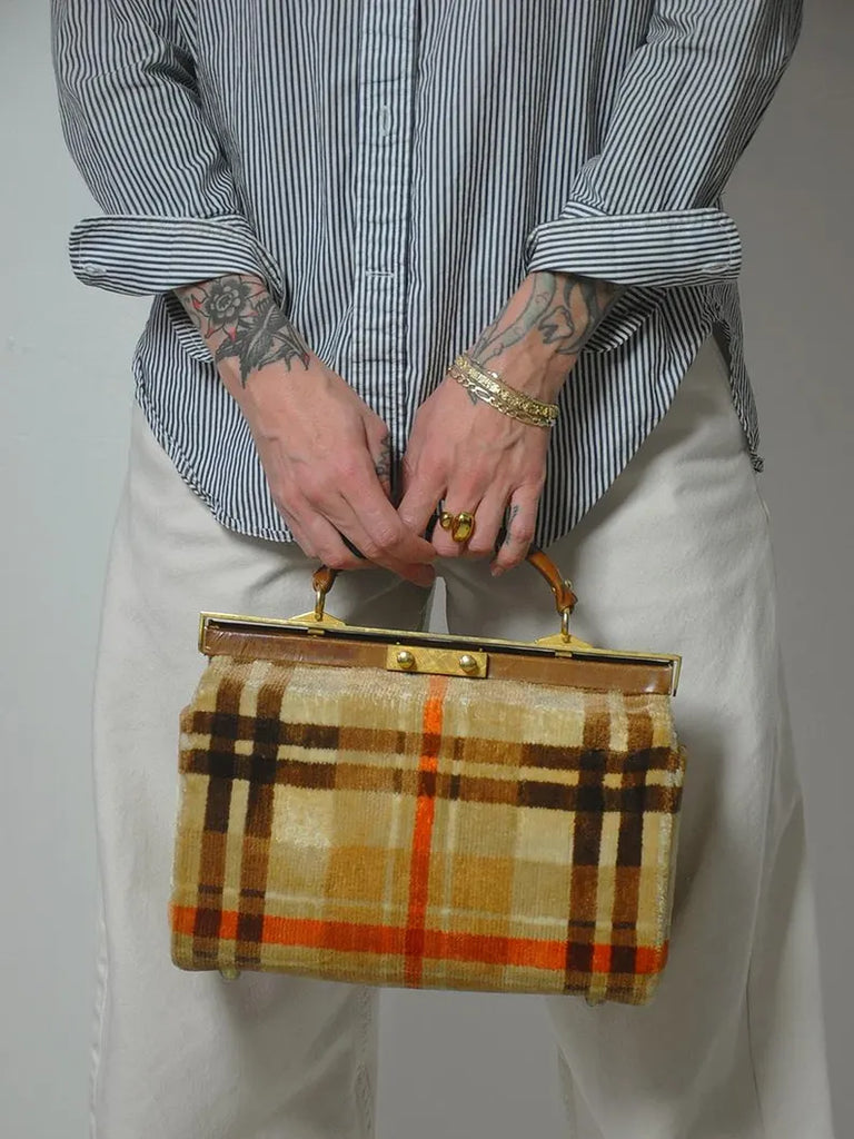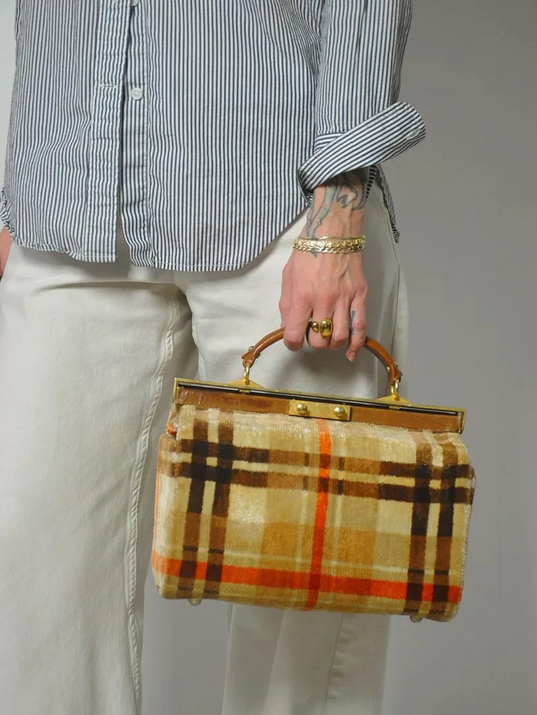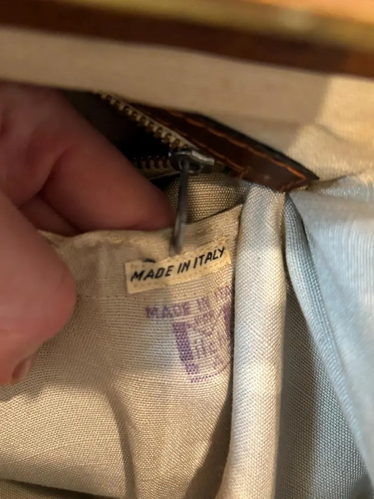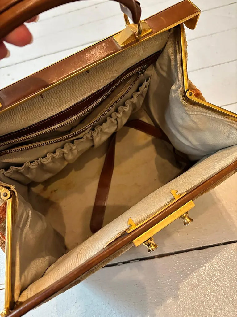In excellent condition - few spots on back of purse and inside. Normal wear to edges.