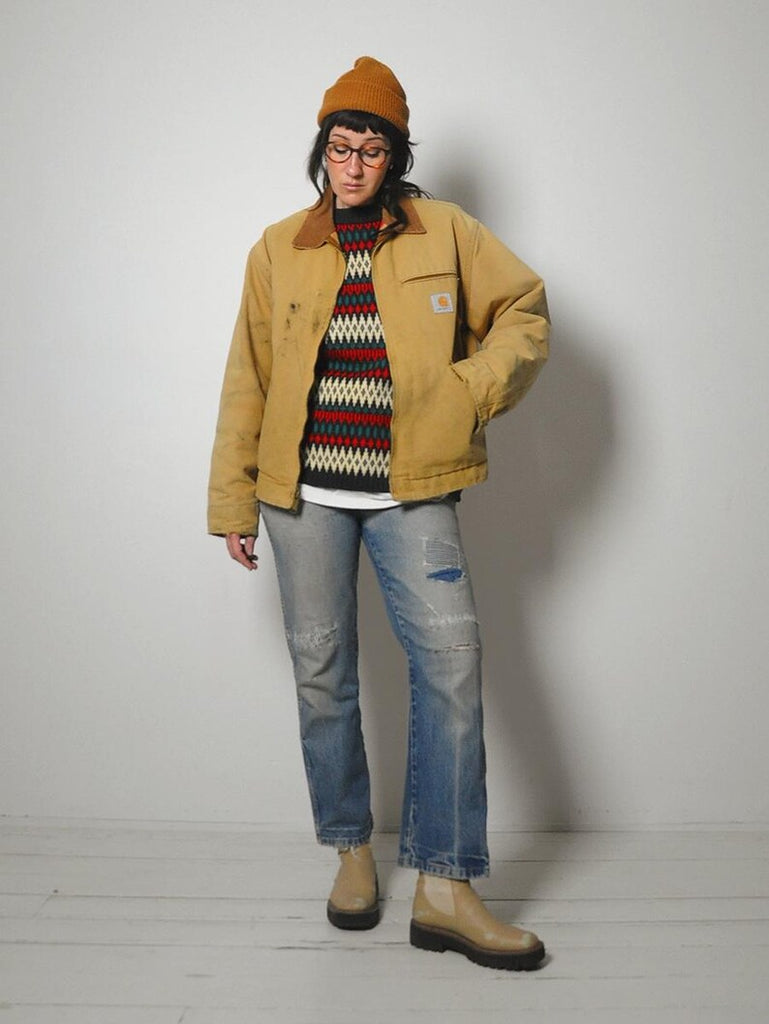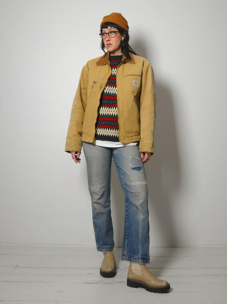 In excellent condition - stains and wear throughout. Fraying on sleeves.