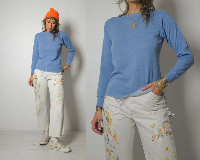 70's Baby Blue Frayed Thermal