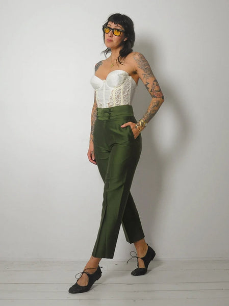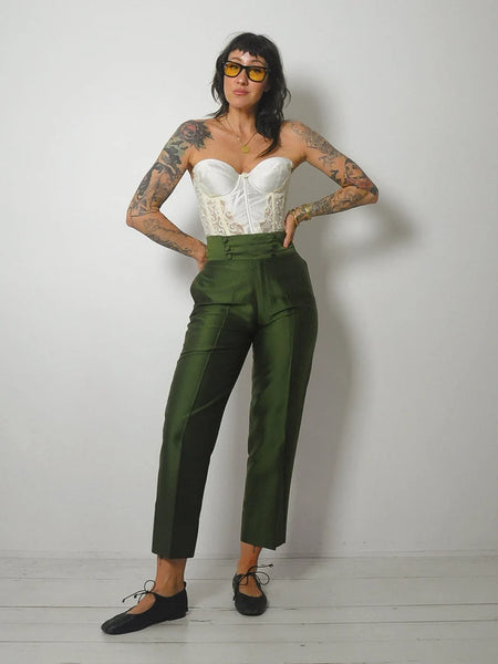 Length: 38.5"Waist: 14"Hip: 20"Inseam: 27"Rise: 12.5"Fabric: feels like raw silk