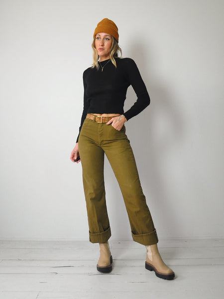 Vintage 60's/70's black soft knit sweater. Cropped shape with ribbed bottom hem. Soft and thin knit.