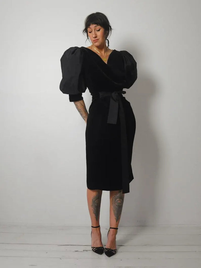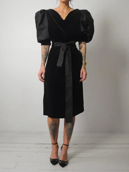 1960's Puff Sleeve Velvet Dress