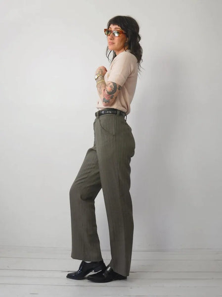 1970's Green Flared Trousers 34x31.5