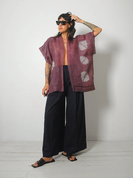Vintage sheer plum robe jacket. Shibori dyed detail. Open fit - no closure.
