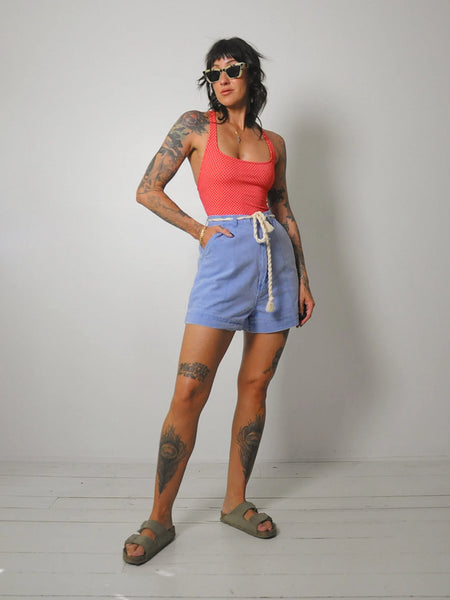 Vintage 1980's LL Bean x Patagonia standup shorts. Highest waist. Soft canvas material. Snap and zipper front. Velcro pockets at backside. *pinned on model with belt - not included.